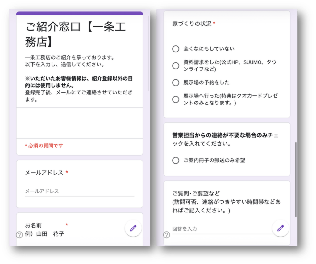 一条工務店紹介フォーム