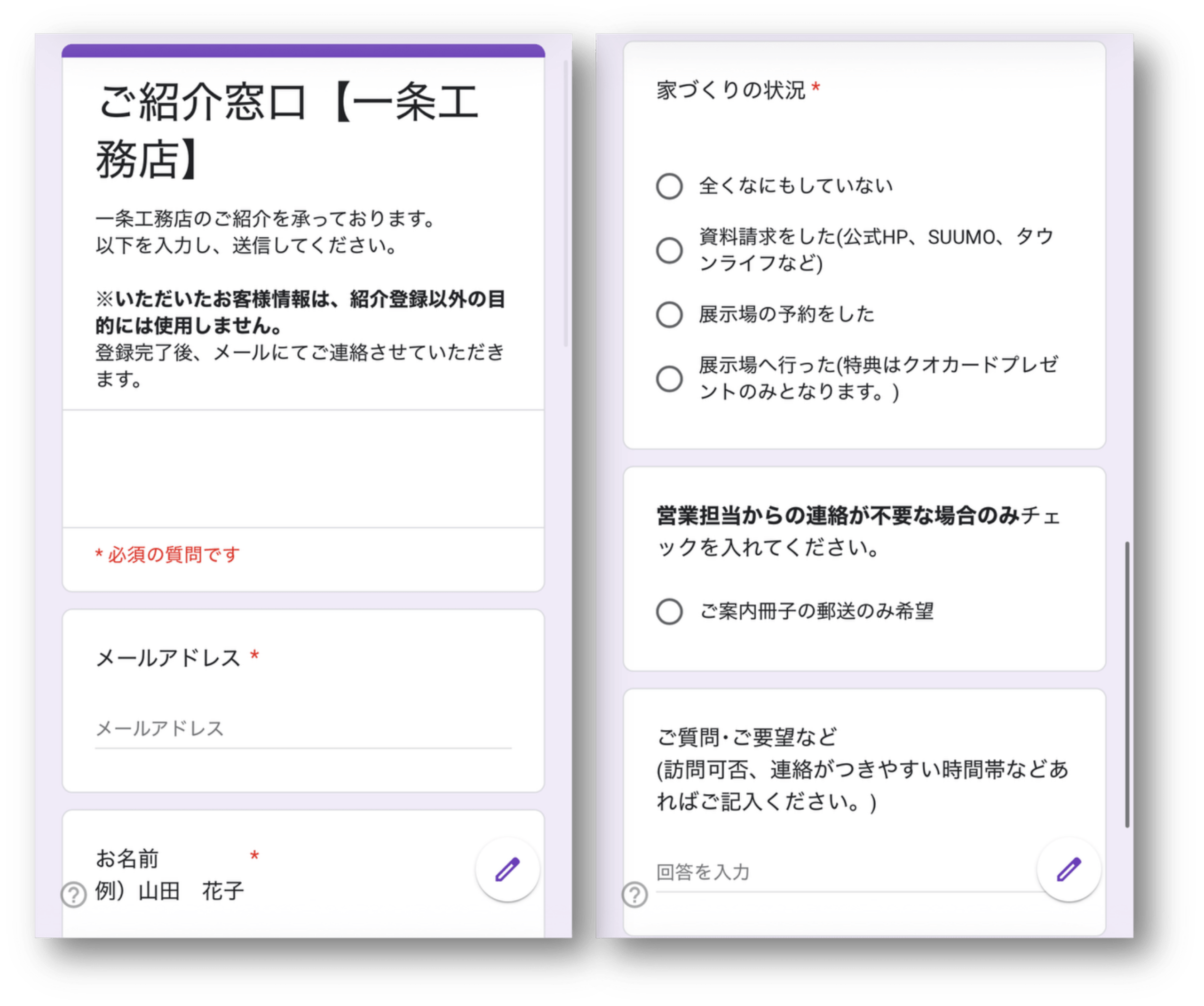 いただいた情報をもとに、私の方で一条工務店の紹介専用サイトより紹介登録をします。