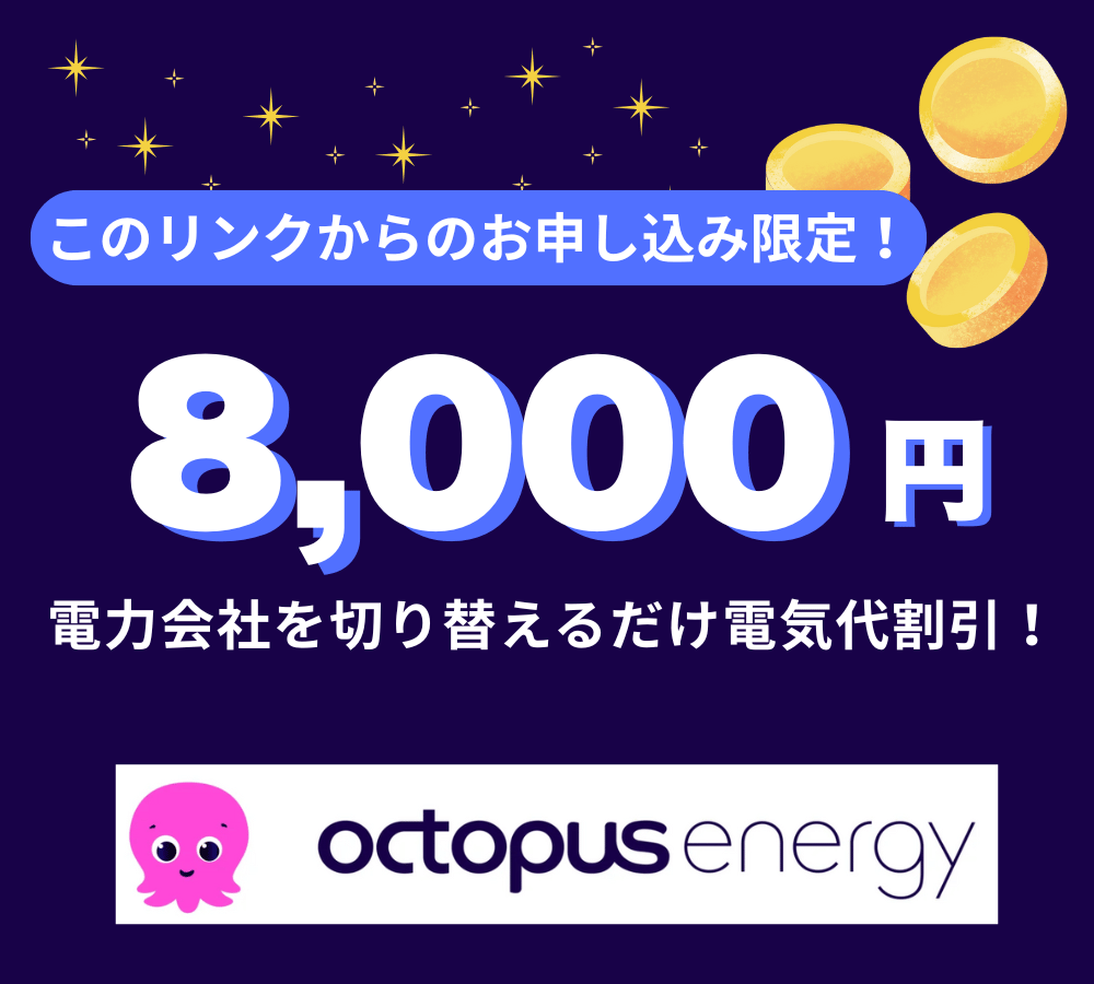 オススメな人に当てはまったら、8,000円割引が適用になる下のリンクから、オトクにオクトパスエナジーを始めてみてください!