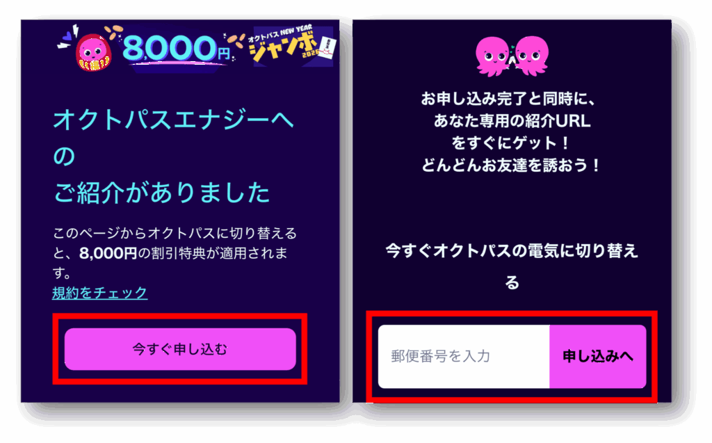 紹介者・被紹介者の双方にメリットがあるので、周りでオクトパスエナジーを使っている人がいれば、紹介してもらうのをオススメします。