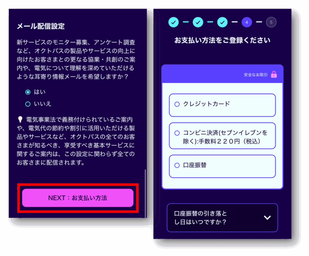 STEP③お支払い方法の登録