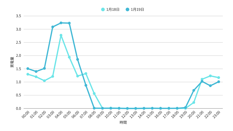 このように、日中はほとんど太陽光で電力をまかなえており、「買電」するのは深夜が中心です。