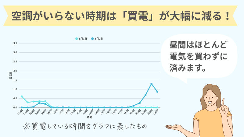- 在宅が多い・タイマー式の家電を使っているなど、「買電」する時間を調整できる人
