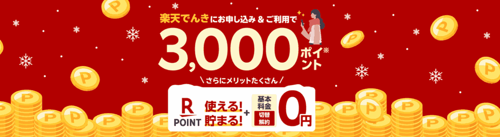 | 楽天でんき | 申し込みで楽天ポイント3,000Pプレゼント |