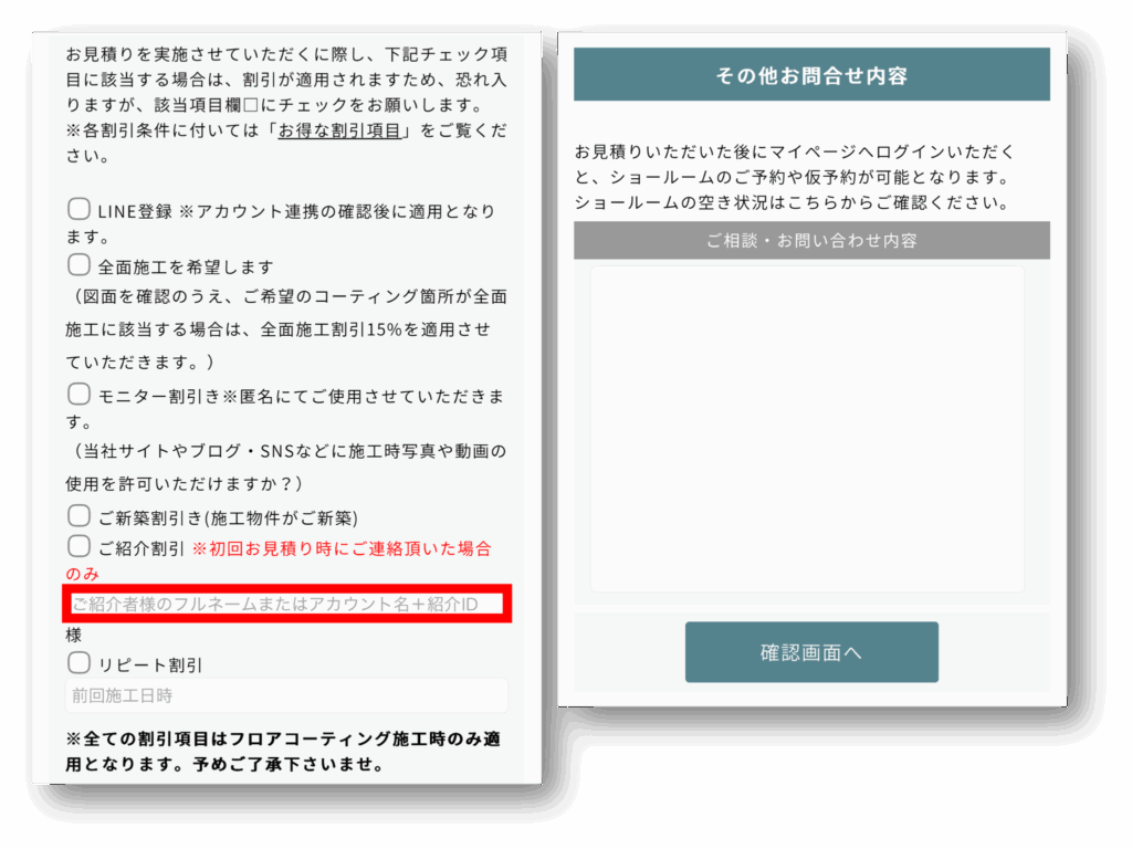 そのため、最初の見積もり依頼時に忘れずに紹介コードを入力しましょう!